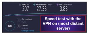 As you can clearly see from the above pictures, my internet speed was virtually unaffected by being connected to a local host. My download speed rose on the remote server in Australia — it was actually faster than without a VPN — but my internet ping was noticeably slower while browsing and streaming. Pages and videos took about 15-20 seconds to load.
