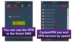 CactusVPN’s Android app has an intuitive interface, maintains fast speeds, and offers split-tunneling. You can also choose split-tunneling or WireGuard from the Android app. CactusVPN lets you sort servers by speed to help you find the fastest one.