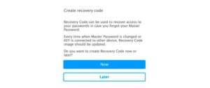 FSecure Key prompts you for a master password and backup key to be used before opening the program.