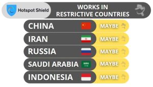 Hotspot Shield does not always bypass VPN blocks in restricted countries. It states that it works occasionally in countries like China and Indonesia.