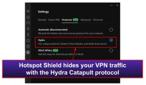 Hotspot Shield’s proprietary Hydra protocol is one of my favourite things. It is available on iOS and Android as well as Windows and macOS. Hydra also includes: