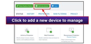 Remote management is one of the greatest features of Sophos. Up to 10 devices can be managed. This feature is ideal if you need to quickly change security settings, run malware scans, or manage parental controls across multiple devices.