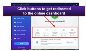 Both the desktop application and online dashboard of Sophos are easy to use. The desktop app can be used to scan for malware, but the rest of the buttons will open a browser to access the online dashboard.