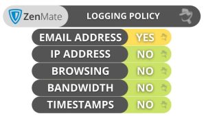 ZenMate VPN uses a no-logs policy. It doesn’t log IP addresses or traffic (the websites you visit and files downloaded). Only your email address is recorded, which is required to create an account. Although ZenMate’s privacy policy does not specify what data ZenMate apps log, customer service confirmed that they do not keep any logs.
